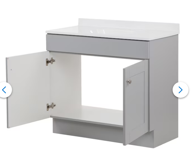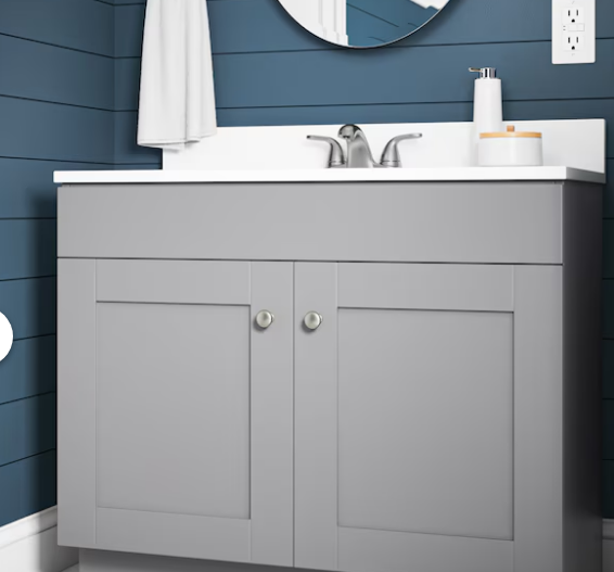 Buy online TODAY! 🚿 Elevate your bathroom with the Project Source Dover 36-in Light Gray Single Sink Bathroom Vanity! Stylish gray finish with white cultured marble top. Perfect for a modern bathroom upgrade! #BathroomVanity #ElegantDesign Follow the link below to buy now.