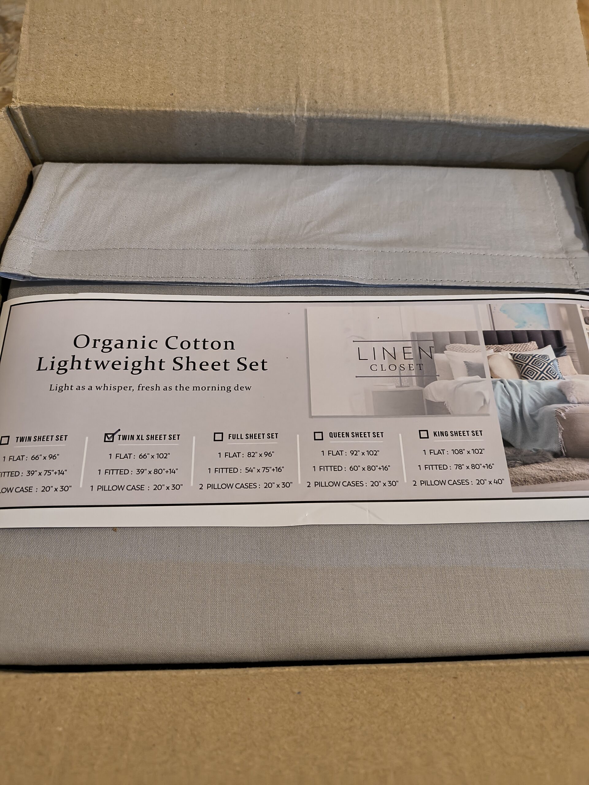161 Twin XL Linen Closet Organic Cotton Lightweight Sheet Set – Breathable, Soft, and Hypoallergenic