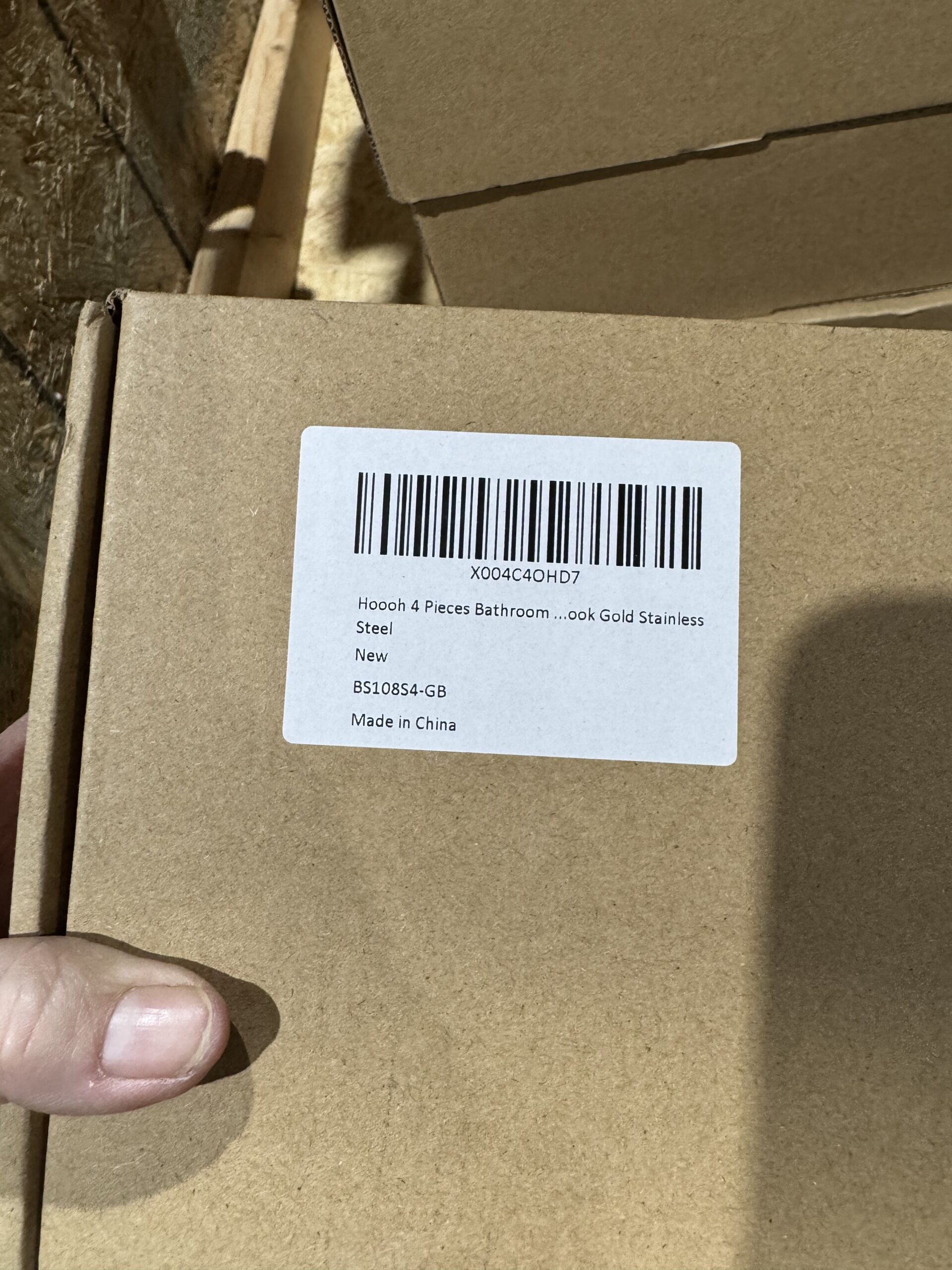Add a touch of luxury and functionality to any bathroom with this 4-piece gold towel hook set, shipped new in its original packaging. Each hook is elegantly finished in gold, blending style and utility to elevate your space. Whether you’re outfitting a master bath or updating a guest bathroom, this matching set ensures visual cohesion and premium appeal.