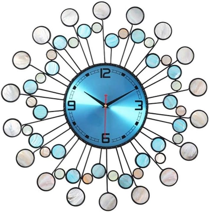 • Natural deep sea shell wall clock, handmade wrought iron, electric welding, lacquering, showing personality and value. The surface is decorated with natural shell fragments, which are personalized and showcase the creativity of the wall clock.