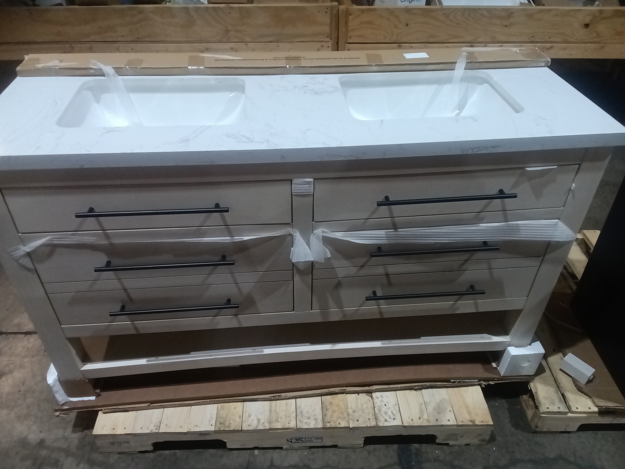 🌟Upgrade your bathroom with this stylish 60″ Double Sink Vanity! 💫Perfect for master baths or shared spaces. Ample storage, durable design, and modern style. #BathroomUpgrade #HomeDécor #AuctionFind